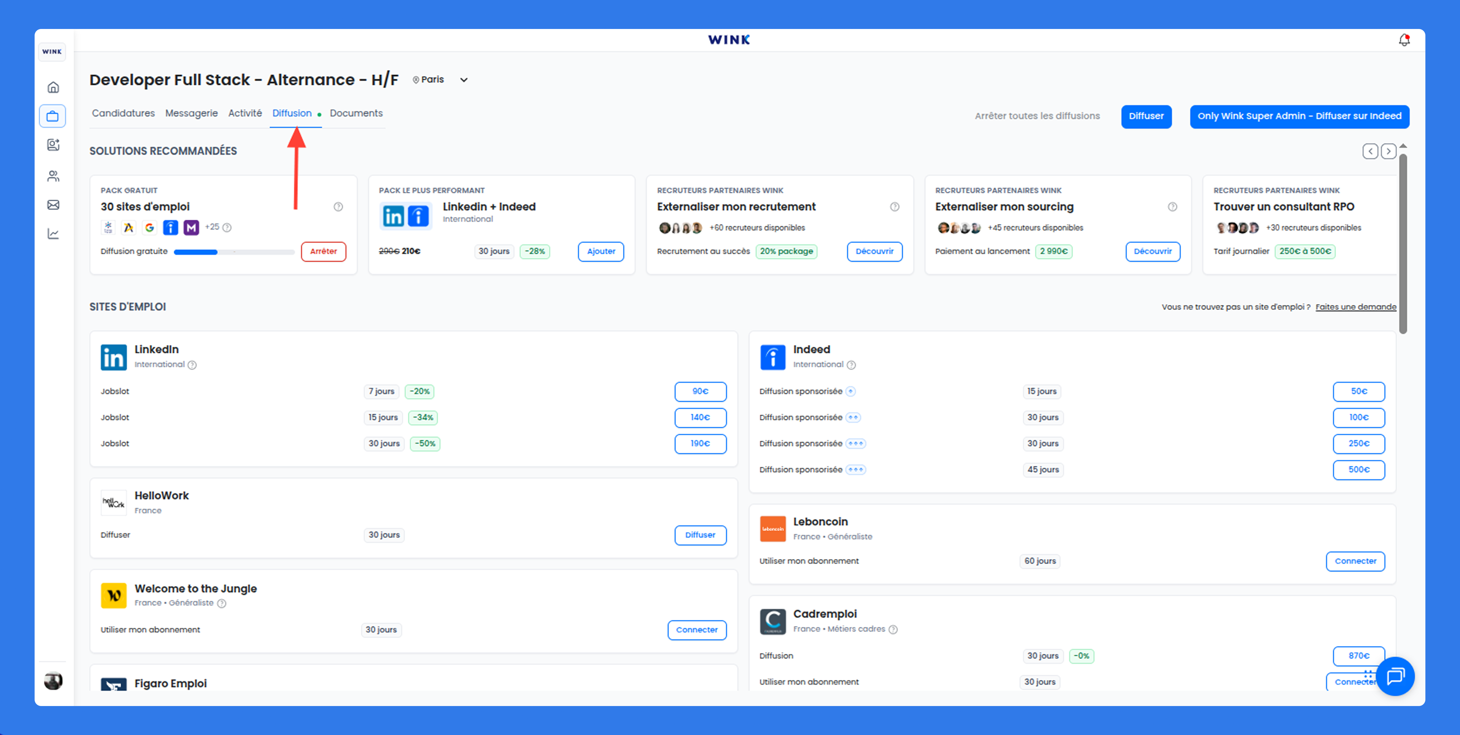 Vous avez la possibilité d’ajouter ou d’arrêter une annonce sur le ou les sites d'emploi que vous désirez à n'importe quel moment !