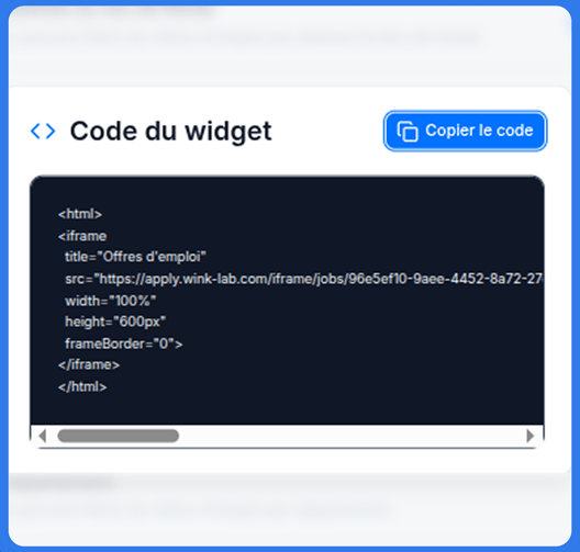 L'intégration iFrame vous permet de publier sur votre site internet les offres d'emploi créées sur Wink.