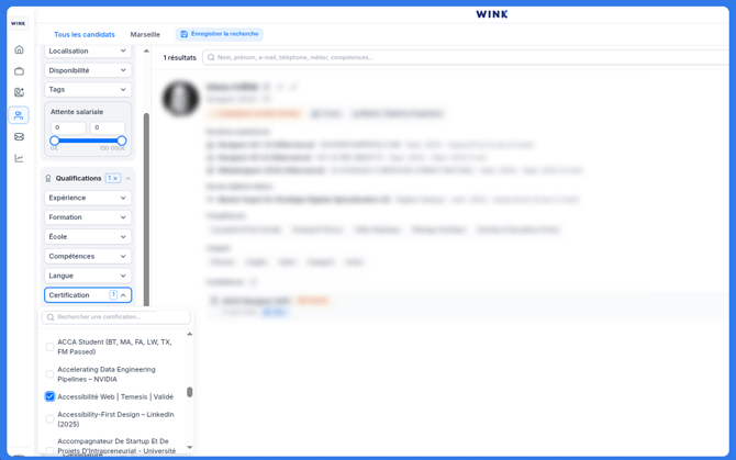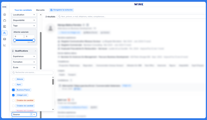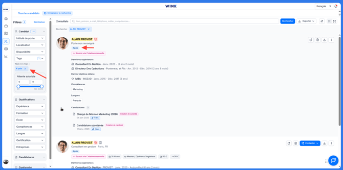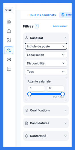 Pas si simple de retrouver un candidat dans un vivier surtout lorsque le nom du talent nous échappe ! Pas de panique, chez Wink, on a pensé à tout et surtout à vous. Retrouvez en quelques clics vos pépites grâce aux nombreux filtres prévus à cet effet.