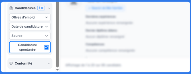 Situé en haut à droite de la liste de candidat, le bouton "filtres" permet de faire des recherches approfondies via un système de filtre.