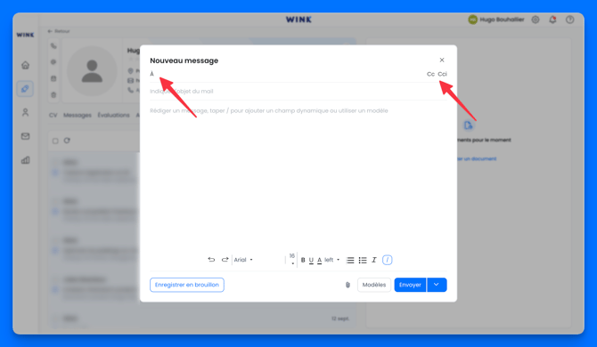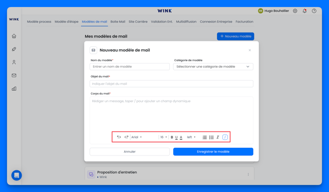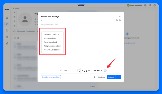 Si vous avez bien suivi les différentes, dès que vous souhaitez enjoyer un mail à un candidat ou depuis la boîte mail intégrée dans Wink, vous pourrez facilement intégrer vos nouveaux modèles.